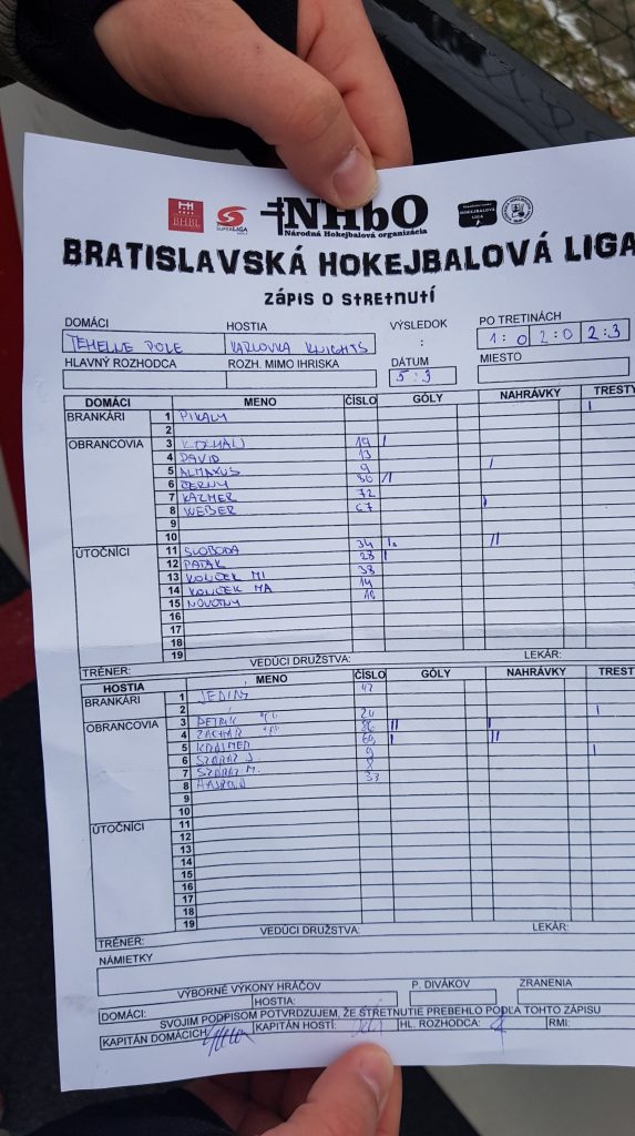 Do súpera sme v početnej presile začali hneď búšit , no postupne sme začali zisťovať, že najsilnejšia zbraň súpera je jeho brankár , ktorý nás svojimi zákrokmi často privádzal do šialenstva . Prvú tretinu sme po neustálom dobíjaní súpera ukončili výsledkom 1:0 kedy sme premenili na gól iba jednu presilovku a 10 minút pred koncom druhej tretiny bol výsledok identický a my sme začali postupne nervóznieť. No potom to prišlo. Začala fungovať takzvaná hokejbalová gravitácia , ktorá spôsobuje , že určitá sila priťahuje nehrajúceho hráča na ihrisko a iba zriedkakedy jej dokážete odolať. Táto gravitácia a naša strelecká nemohúcnosť doslova obliekla Iča Černého do nášho belasého dresu a s oznámením „chlapci idem hrať “ sa zrazu ocitol na ploche so zámerom vytrhnúť mužstvo zo streleckej mizérie. No a čo sa stalo? Chel by som to popísať štýlom nášho hokejového reprezentanta Žiga Pálfyho: Normálne prišiel na plochu, nabehol si do voľného , dostal prihrávku medzi kruhy a jebol to do bránky. Áno , dielo dokonané . Prvý Ičov dotyk s loptičkou skončil v bránke. No to nie je všetko . O päť minút neskôr zo situácie 2:1 dal brankárovi lišiacky „teplomer“ a druhá tretina skončila v pomere 3:0 . V treťej tretine sa ešte podarilo skórovať Ronovi príklepom od modrej a takisto Peťovi Patákovi nádherným tečom. Trikrát sa nám „podarilo“ aj inkasovať a s konečným výsledkom 5:3 sme boli nakoniec spokojní a pripísali sme si ďaľšie 3 body do tabuľky. Na tradičnej kofole U Wallnera sme sa ešte dozvedeli milú správu od jedného z „ziegelfelďákov“ Rada Suška o plánovanej svadbe , k čomu mu všetci gratulujeme a už dnes prajeme všetko dobre na spoločnej ceste manželstvom.