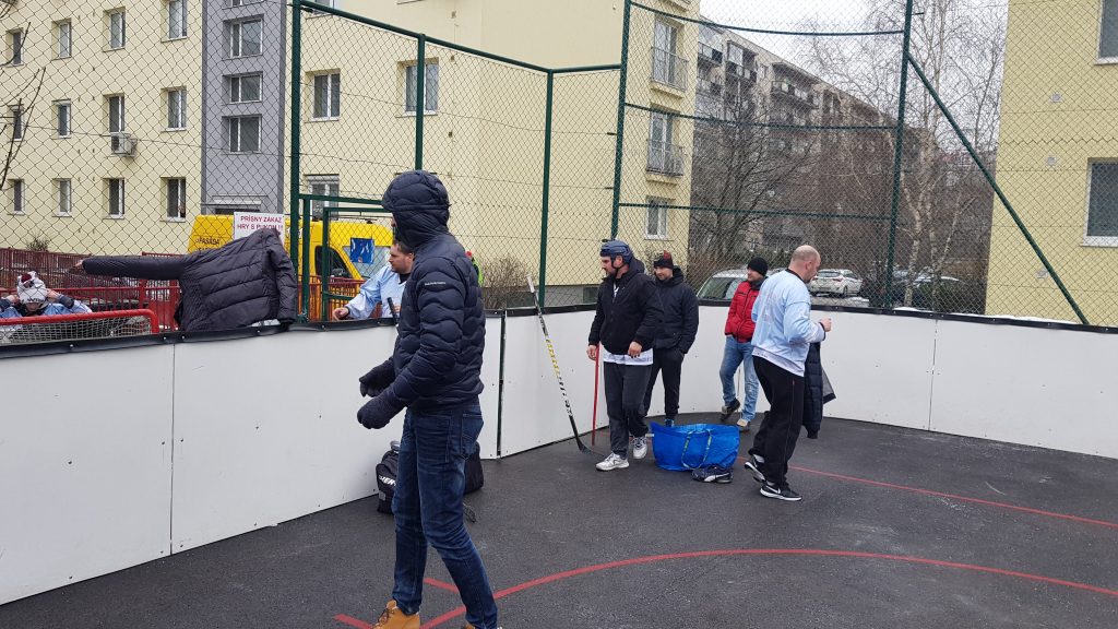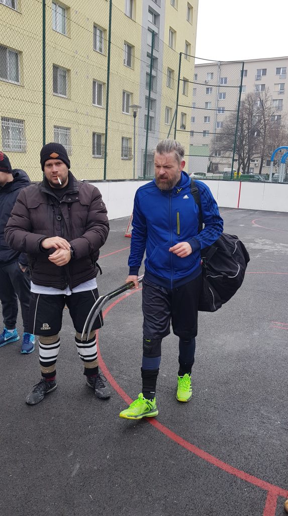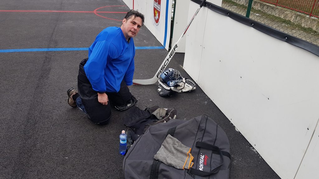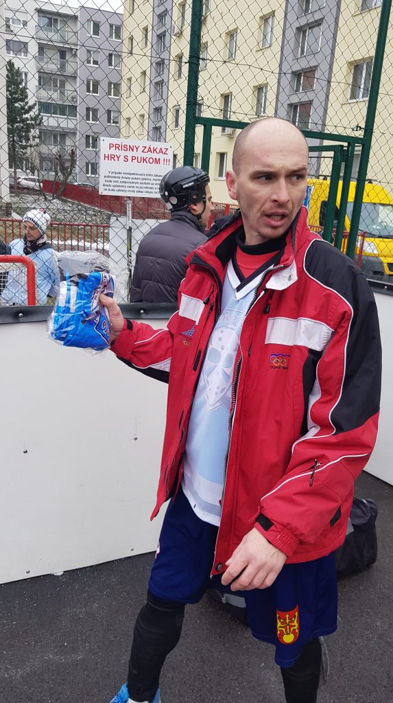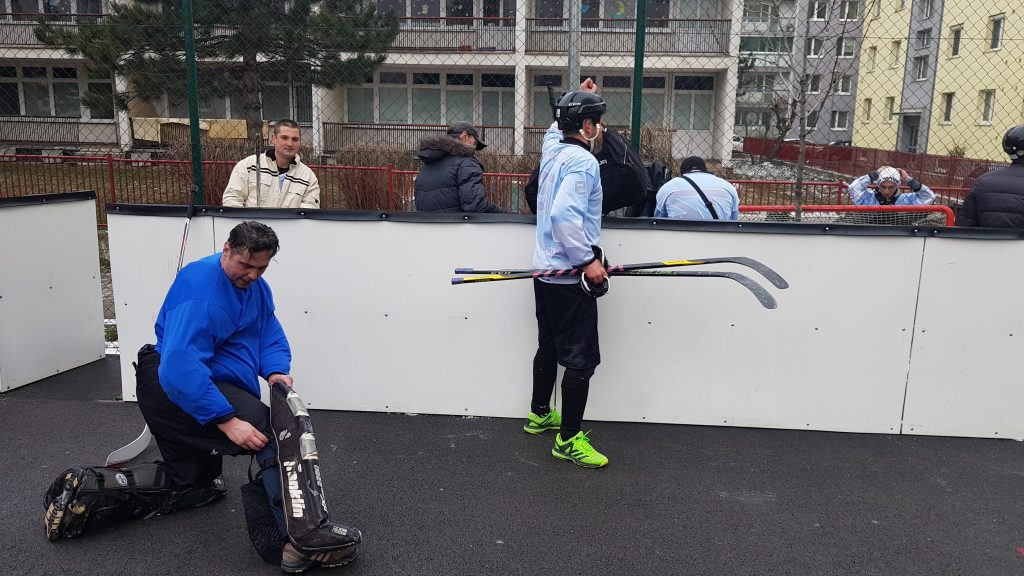 No poďme už konečne k toľko očakávanému zápasu . Karlovka došla v počte 6 hráčov do poľa + brankár a my sme sa nazbierali na počet 11 hráčov + brankár. Apropo:brankár – naša jednotka Zdenko bol odcestovaný na lyžovačke a naša dvojka Miky si plnil hokejové povinnosti. Čo teraz ? Nemáme brankára . Nakoniec sme problém vyriešili zaregistrovaním novej „trojky“ v podobe Pala Pikályho , ktorý nám chodí pravidelne fandiť a tiež chytať na naše téningové jednotky. Palo odchytal svoj posledný ligový zápas v roku 1989! Nepodceňovali sme ho , no mali sme určité obavy.